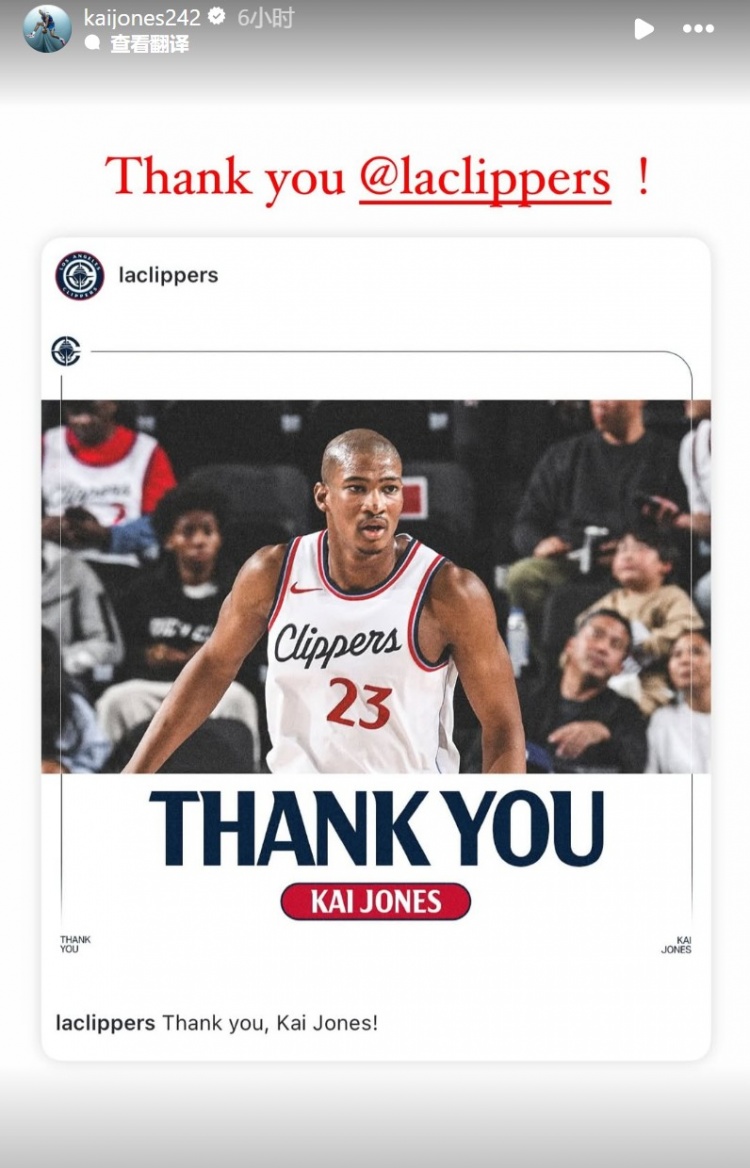 凱-瓊斯轉(zhuǎn)發(fā)了快船的致謝海報(bào),并寫道:“謝謝你,快船。”