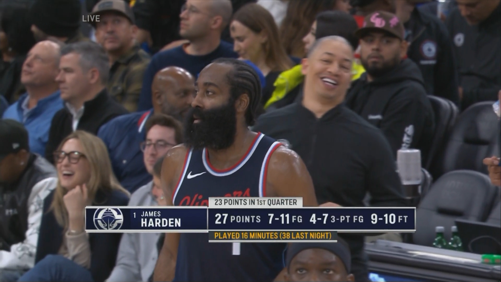 賽后,快船主帥泰倫-盧接受了記者采訪。談到哈登的表現(xiàn),他說道:“看到35歲的他在背靠背的第二戰(zhàn)拿到50分,這已經(jīng)說明了很多關(guān)于他的偉大。他每晚都去競爭,背靠背出戰(zhàn)38分鐘,但我們需要他的每一分?!?/p>