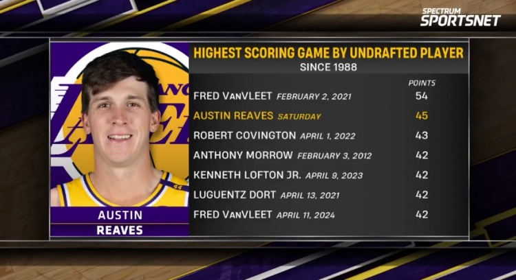 里夫斯單場(chǎng)45分 NBA歷史落選秀第二高&僅次于范喬丹的54分