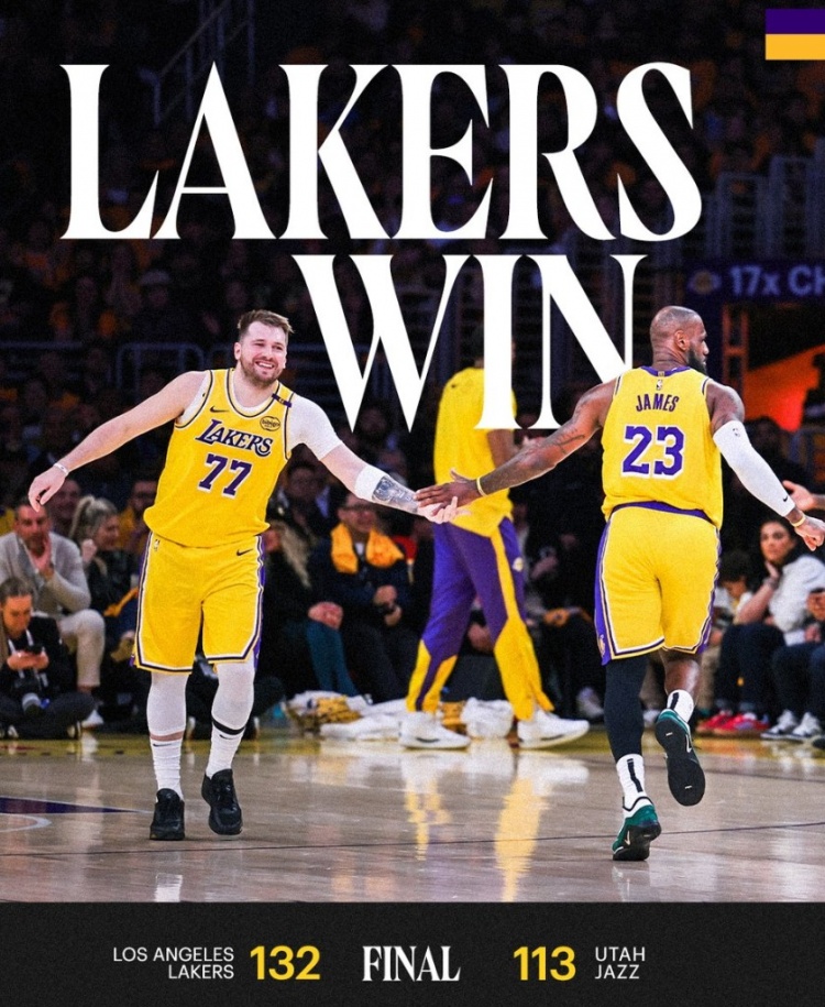 2月11日訊 NBA常規(guī)賽,湖人主場(chǎng)132-113大勝爵士,豪取六連勝。賽后,詹姆斯和東契奇同時(shí)登上湖人官方的贏球海報(bào),官方寫道:“六連勝啦?!?/p> 標(biāo)簽: NBA 籃球 湖人 詹姆斯 東契奇