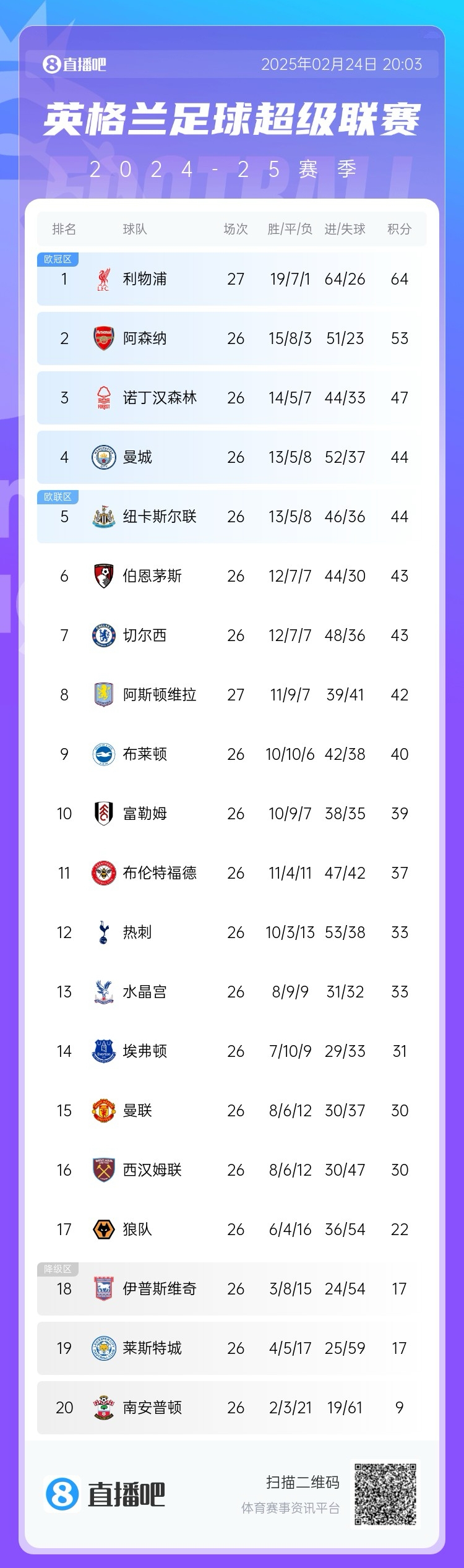 這樣一來,本賽季英超可能早早結(jié)束爭冠和降級的兩大懸念,季末焦點可能會集中在爭5甚至爭6。
