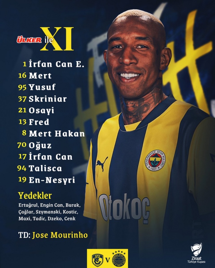 費內(nèi)巴切首發(fā):1-伊凡-詹-奧里巴亞特、16-穆爾杜、95-阿克西切克、37-什克里尼亞爾、21-奧薩伊、13-弗雷德、8-哈坎、70-奧古茲、17-伊凡-詹-卡維奇、94-塔利斯卡、19-恩內(nèi)斯里