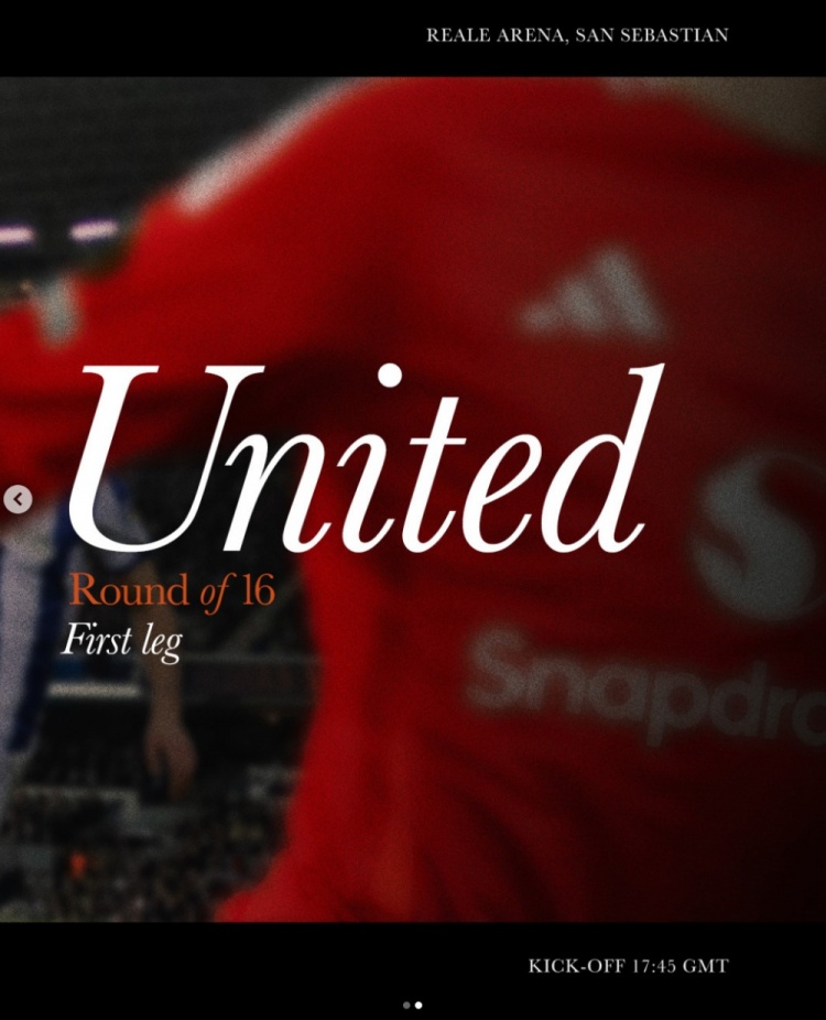 曼聯(lián)發(fā)布為此役制作的海報,德里赫特出鏡,曼聯(lián)社媒配文:“歐聯(lián)杯淘汰賽現(xiàn)在開始。”