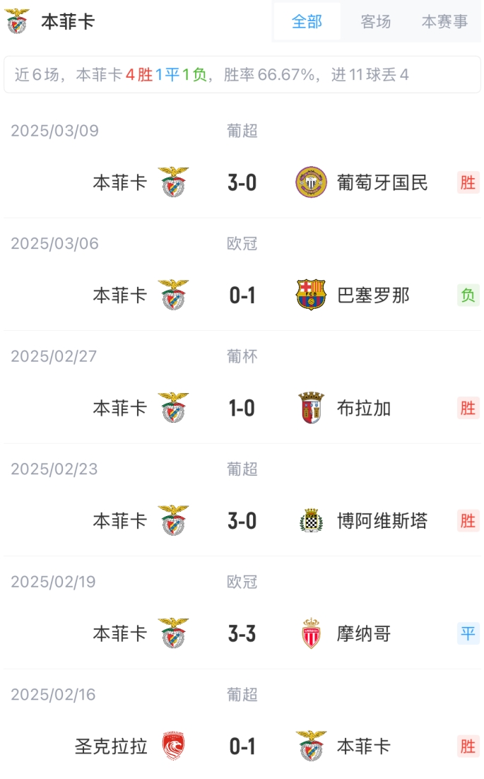 本菲卡替補(bǔ):24-索亞雷斯、71-萊昂納多-桑托斯、81-阿德里安-巴杰拉米、64-貢薩洛-奧利維拉、25-普雷斯蒂亞尼、60-努諾-菲利克斯、84-若昂-雷戈、85-桑謝斯、18-巴列羅、7-阿姆杜尼、9-卡布拉爾、19-貝洛蒂