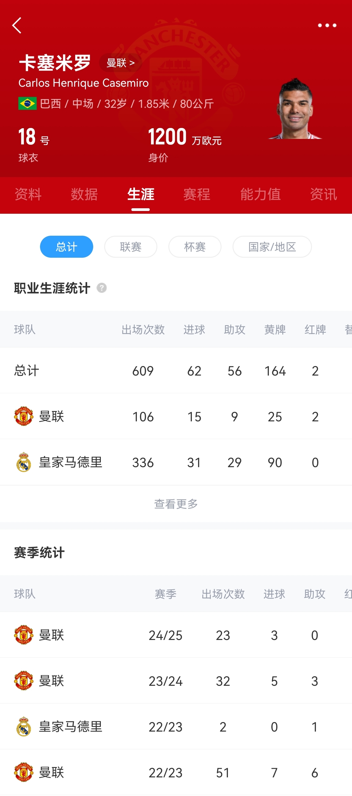 據(jù)悉,曼聯(lián)希望從卡塞米羅身上回收2000萬歐元,但考慮他的年齡和高工資,這一數(shù)字似乎沒有球隊(duì)能夠接受。